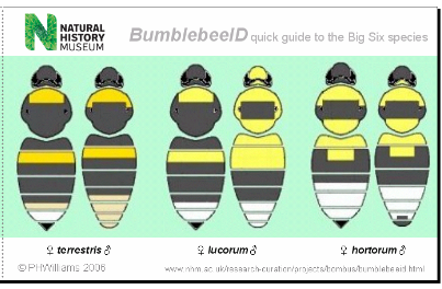 Kieran outlined that while the honey bee is important in pollination, the bumblebee also plays a vital role in the pollination of many wild flowers. The talk then delved a little deeper into the wonderful world of Irish bumblebees, of which there are twenty species in Ireland! Kieran went through some of the more common species, which can be distinguished by their distinctive markings - as shown in the handy diagrams below.